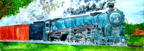 A charming vintage train painting, portrays a bygone era of travel with its rustic charm and timeless allure.