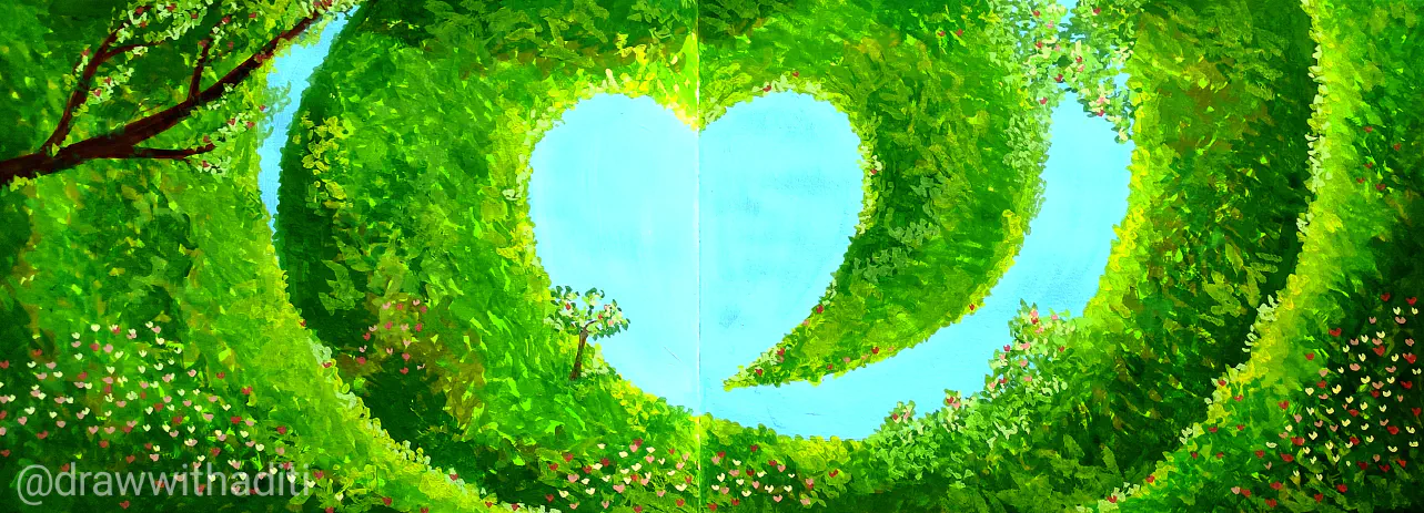 A circular greenery scenery captures one person’s life journey, with lush foliage symbolizing growth and change, a testament to the beauty of evolution.