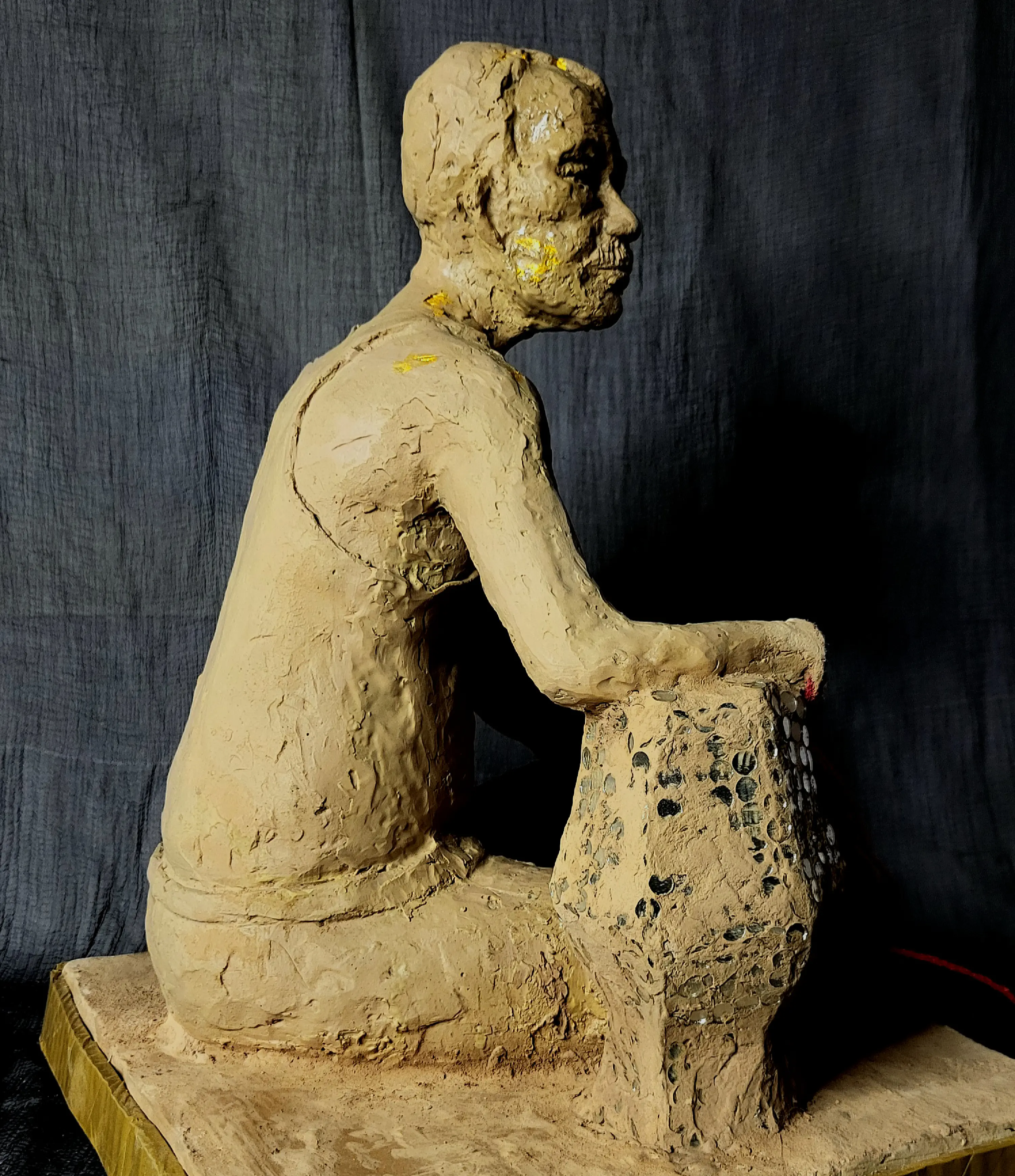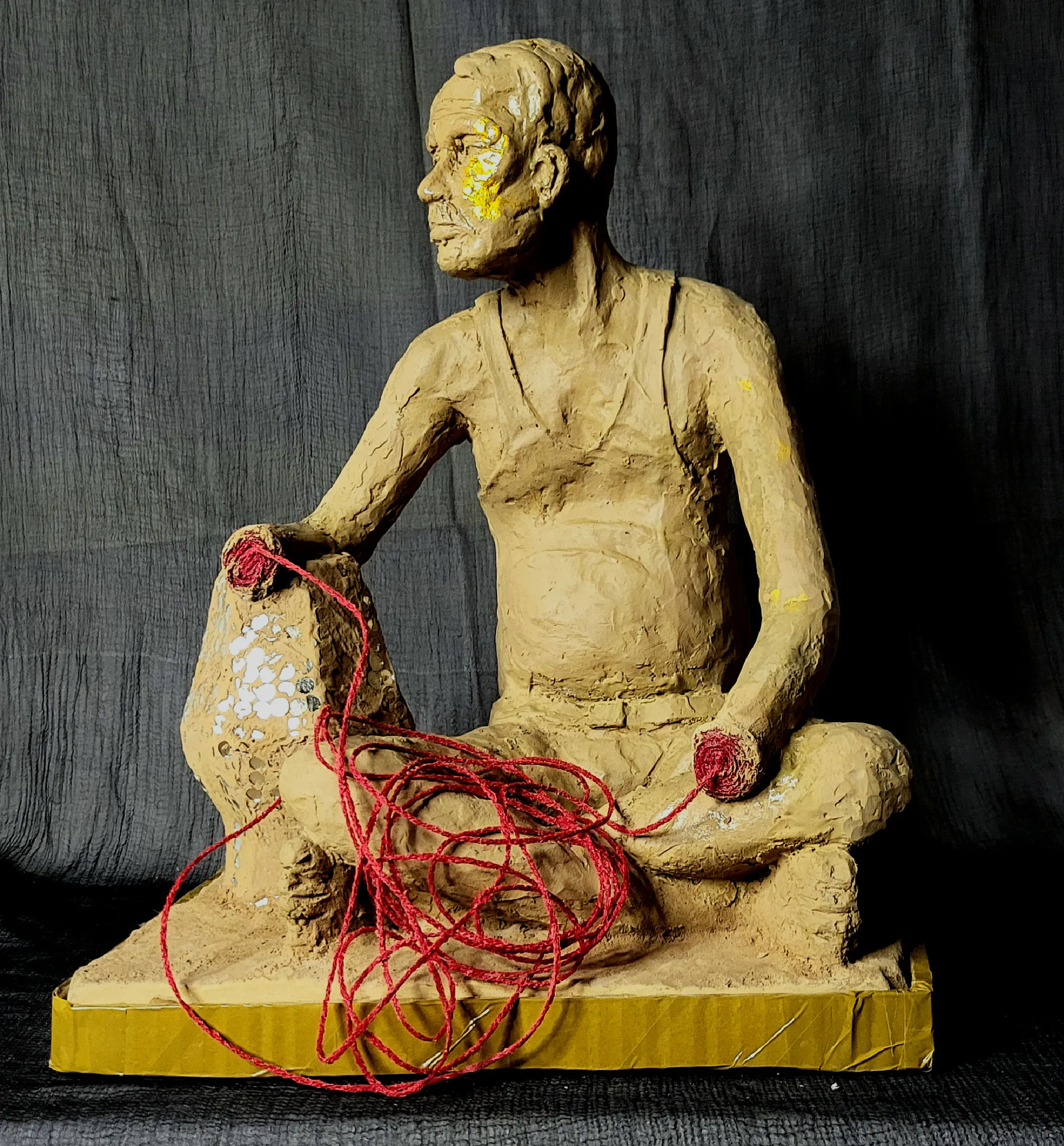 This sculpture shows an elderly man with a red thread, which symbolizes the unfolding of all responsibilities and relationships throughout life, ultimately leading to becoming one with God. The man’s calm expression reflects the wisdom and peace that come with age, as he understands that life is a journey of connections and duties that bring us closer to the divine. The thread represents how, over time, we weave these experiences together, finding deeper meaning and unity with a higher power.